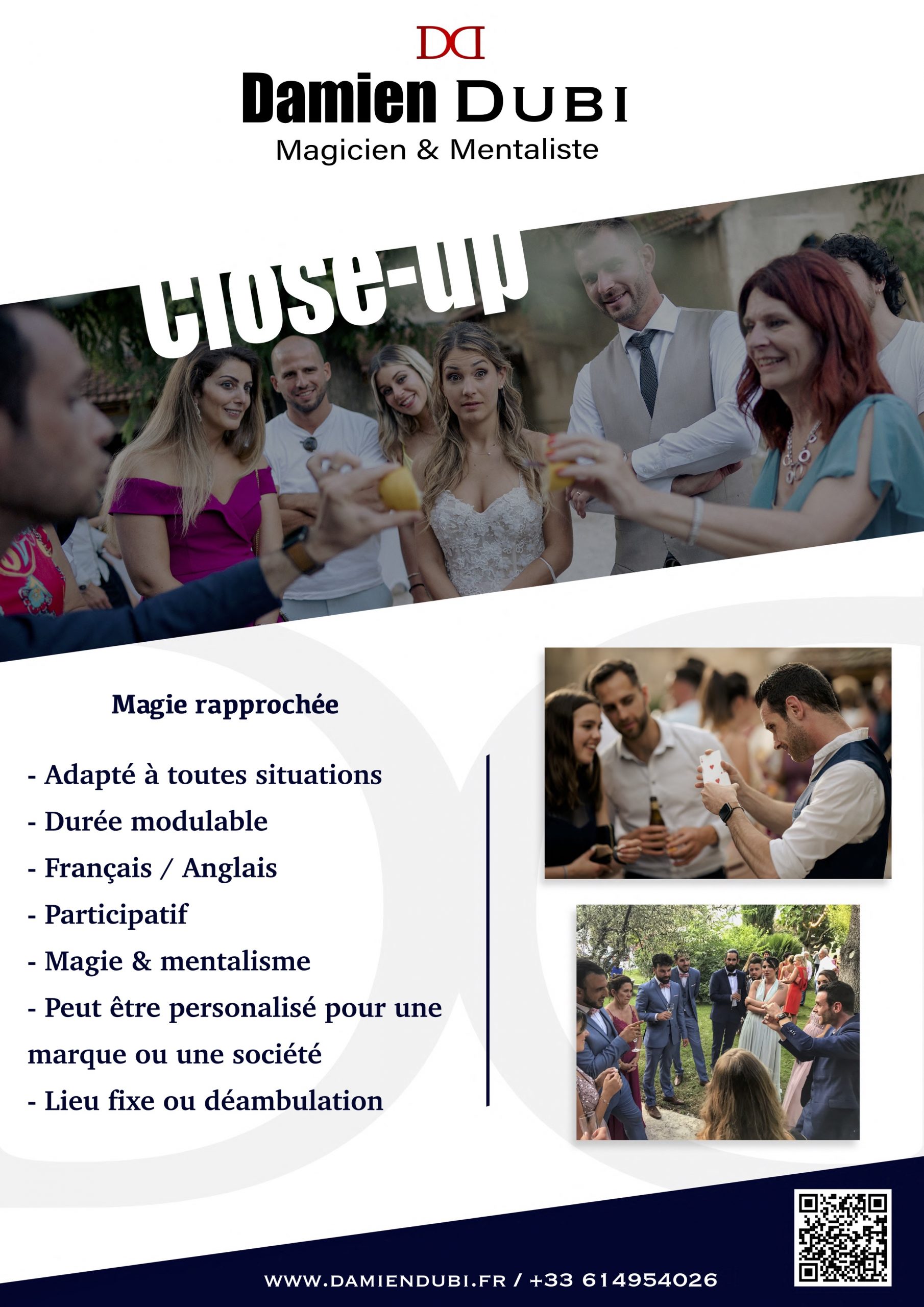 Appelé aussi magie rapprochée est un moyen moderne et déroutant de réaliser un tour de magie, à quelques centimètres des yeux du spectateur. Pour leur plus grand plaisir !